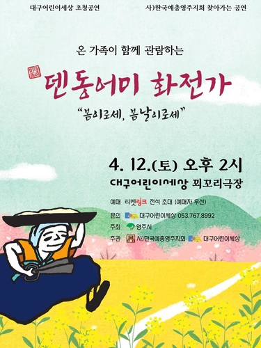 대구어린이세상에서 준비한 봄맞이 첫 무대는 '덴동어미 화전가'라는 마당놀이 공연으로 4월 12일(토) 오후 2시에 전석 무료 초대로 진행된다.